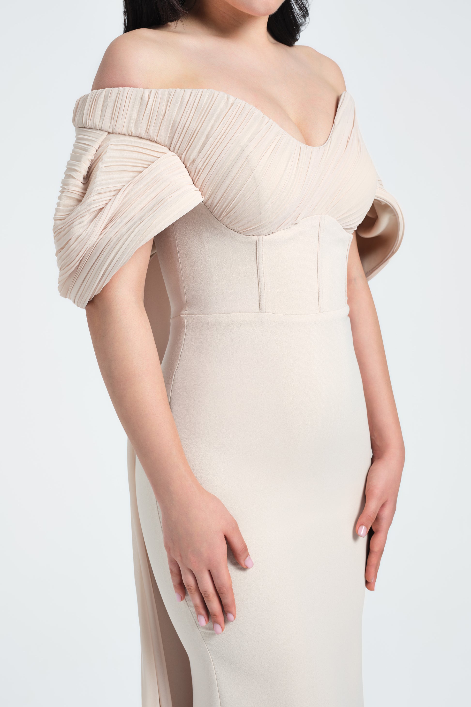 FABRIC:SCHIFFON-CREPE LENGTH:LONG CREPE SHAWL BEHIND SIZE: 38-40-42-44-46-48