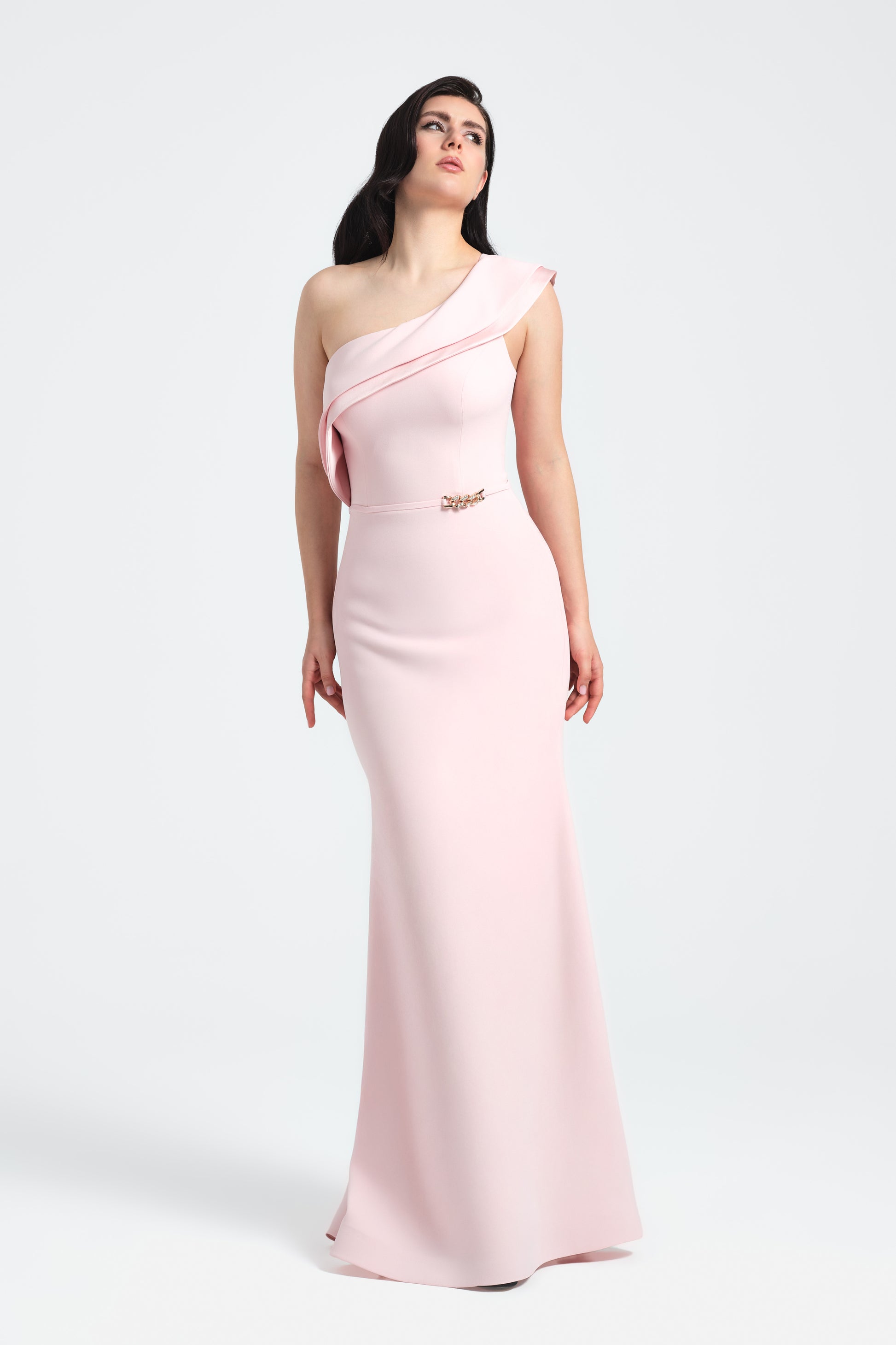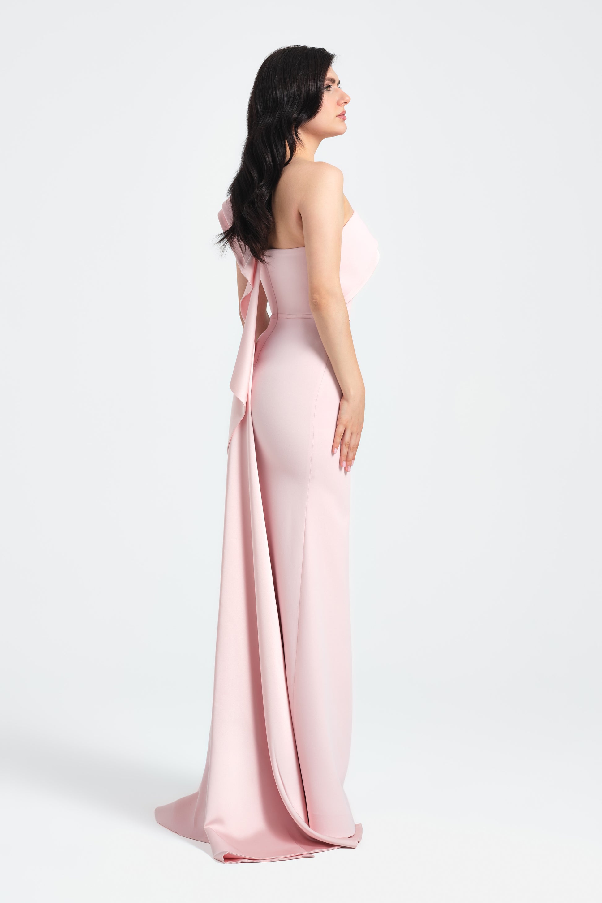 FABRIC: SATIN-CREPE LENGTH: MERMAID SATIN LAYER GOES TO THE GROUND AS ONE PIECE SIZE: 38-40-42-44